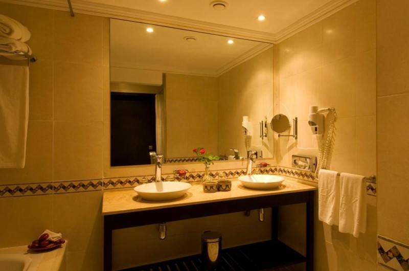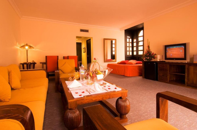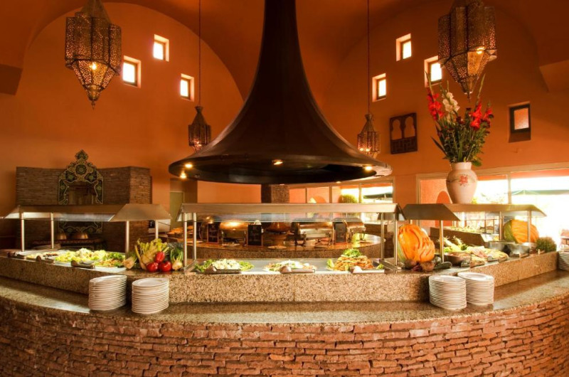 Restaurantul Le Chellah oferă preparate din bucătăria tradițională. Restaurantele La Strada si L'Oasis, ambele situate langă piscină, oferă mancăruri mediteraneene. Barul Aladin are deschidere spre grădini și serveste o gamă largă de băuturi.