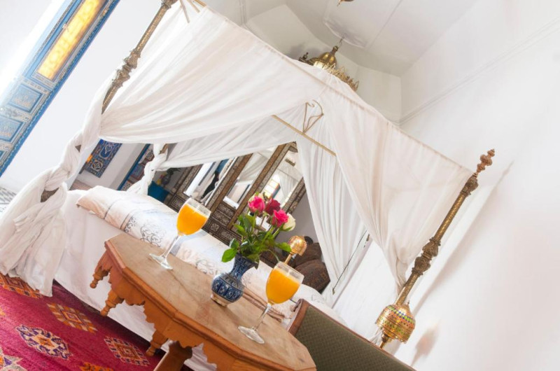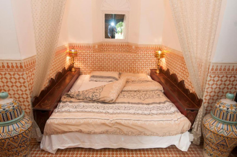 The rooms at Riad Ifoulki are decorated in a traditional Moroccan style featuring Zellij tiling and artisanal handicraft. Equipped with air-conditioning and en suite facilities, they all have views of the patio.