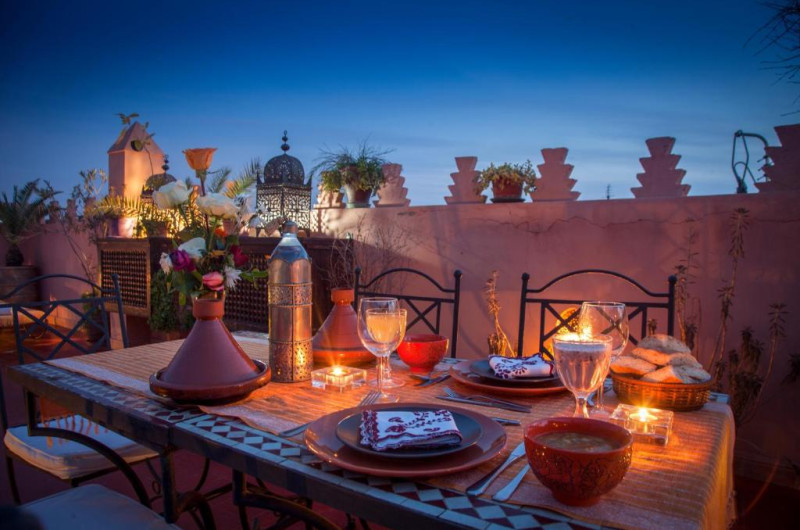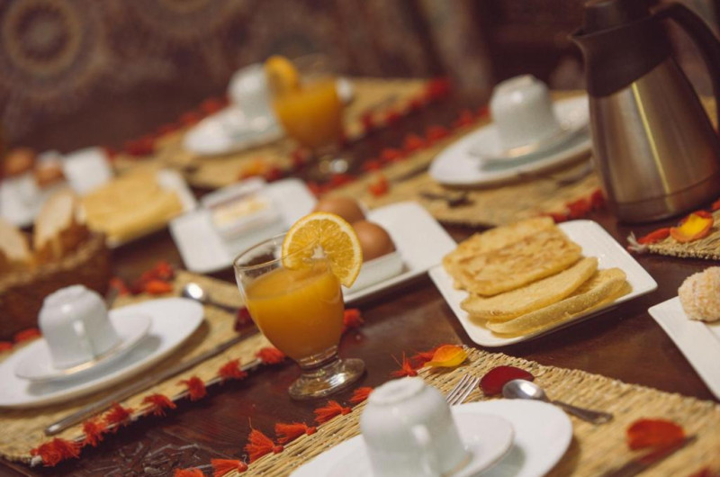 A continental breakfast is served every morning at Riad Sable Chaud and traditional Moroccan cuisine can be prepared upon request.