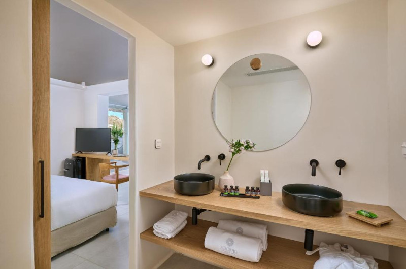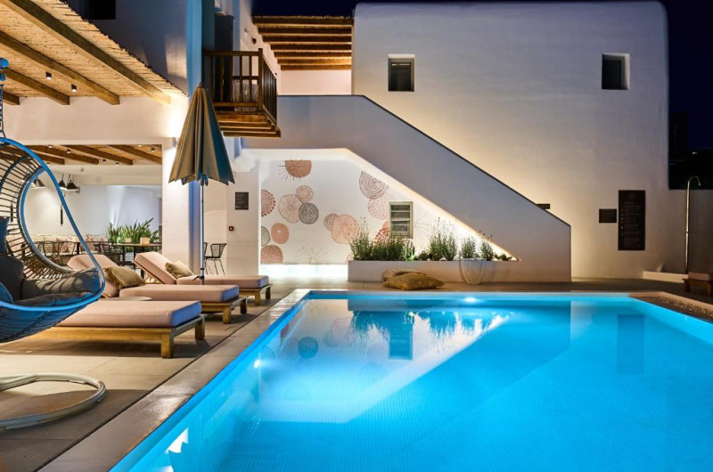 Situat in Ornos, Adorno Beach Hotel and Suites pune la dispoziție cazare, un restaurant, parcare privată gratuită, un centru de fitness și un bar. Acest hotel de 4 stele asigură un serviciu de concierge și room-service. Proprietatea oferă WiFi gratuit, recepție cu program nonstop și piscină in aer liber.