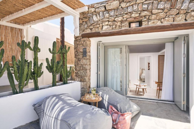 Cel mai apropiat aeroport este Aeroportul Mykonos, situat la 3 km de hotel. Proprietatea furnizează un serviciu de transfer de la/la aeroport la un cost suplimentar.