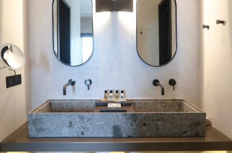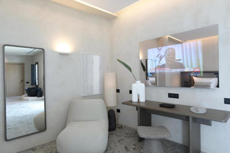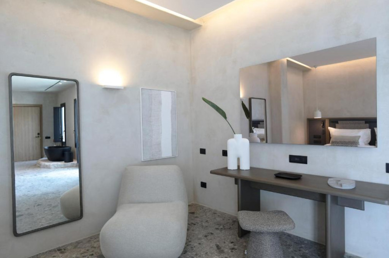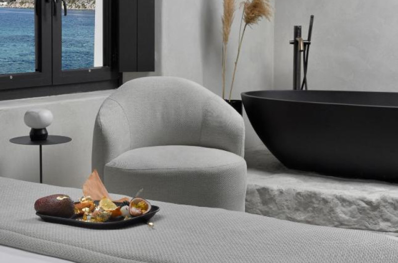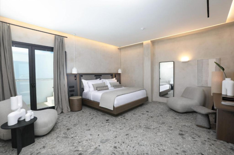 Camerele hotelului sunt prevăzute cu aer condiționat, dulap, aparat de cafea, minibar, seif, TV cu ecran plat și baie privată cu duș. In fiecare cameră există fierbător. Unele camere au balcon, iar altele oferă vedere la mare. In toate camerele de la Aeonic Suites and Spa se asigură lenjerie de pat și prosoape.