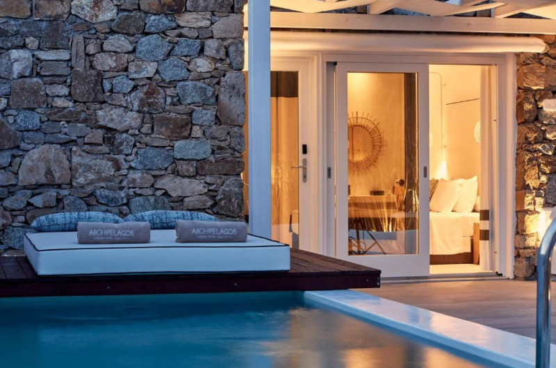 Archipelagos este o proprietate de 5 stele care se află pe malul mării, în Kalo Livadi (Mykonos), și oferă piscină în aer liber cu șezlonguri și umbrele de soare, precum și centru spa/wellness care asigură servicii pentru un sejur extrem de relaxant. Facilitățile de la Archipelagos includ și sală de fitness. Proprietatea are, de asemenea, servicii de recepție cu program non - stop, concierge și închirieri auto. Se oferă acces gratuit la internet Wi-fi în spațiile publice. Parcarea este disponibilă la proprietate gratuit.