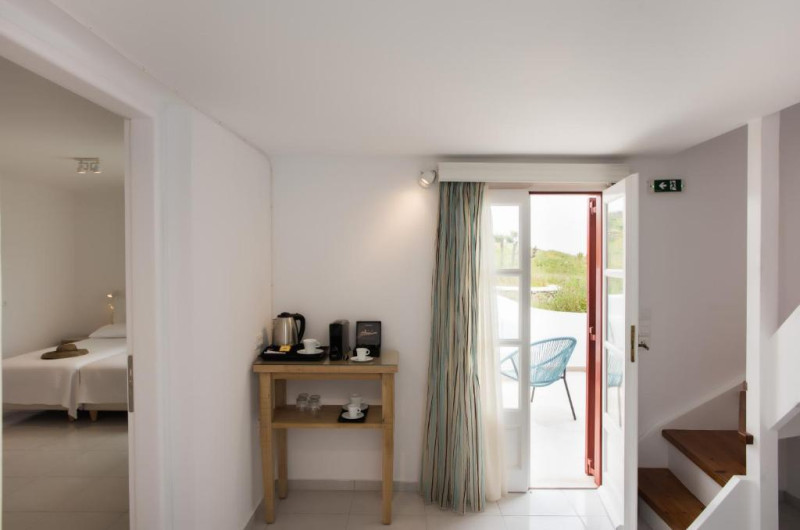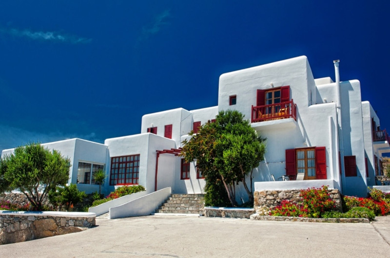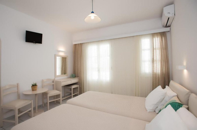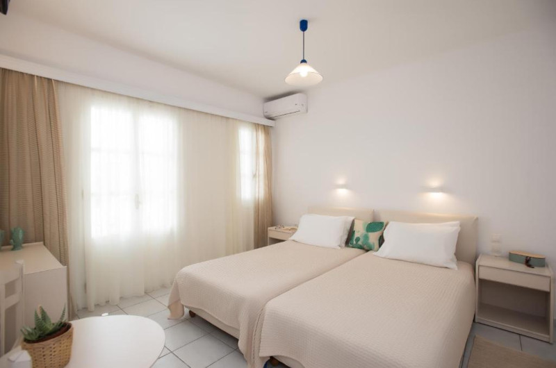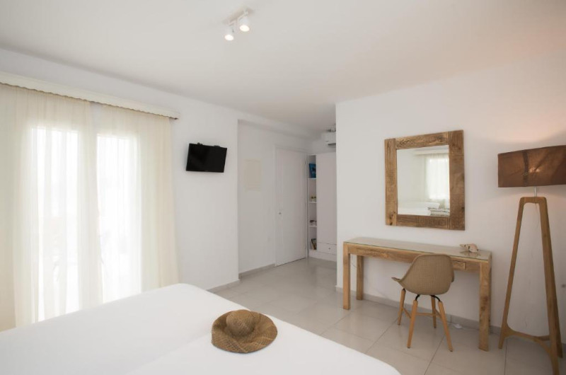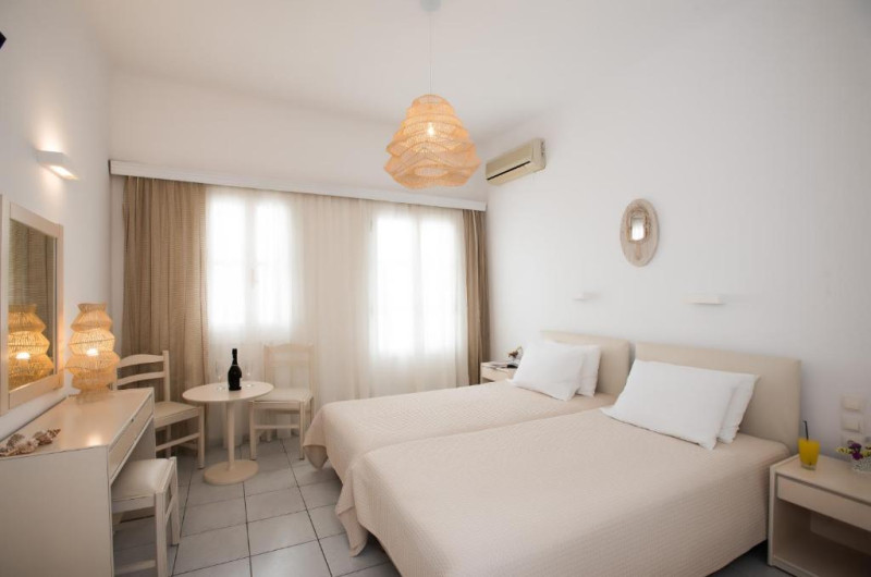 Hotelul la plajă se află la Mykonos oraș la cca 1,5 km de plajă, în centrul al orașului Mykonos și la atracțiile turistice se ajunge în aproximativ 800 de m. Imediat în fața centrului de cazare se află conexiunea la mijloacele locale de transport în comun, magazinele și locurile de ieșit seara în oraș se află la în jur de 800 de m.
