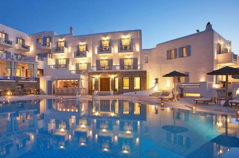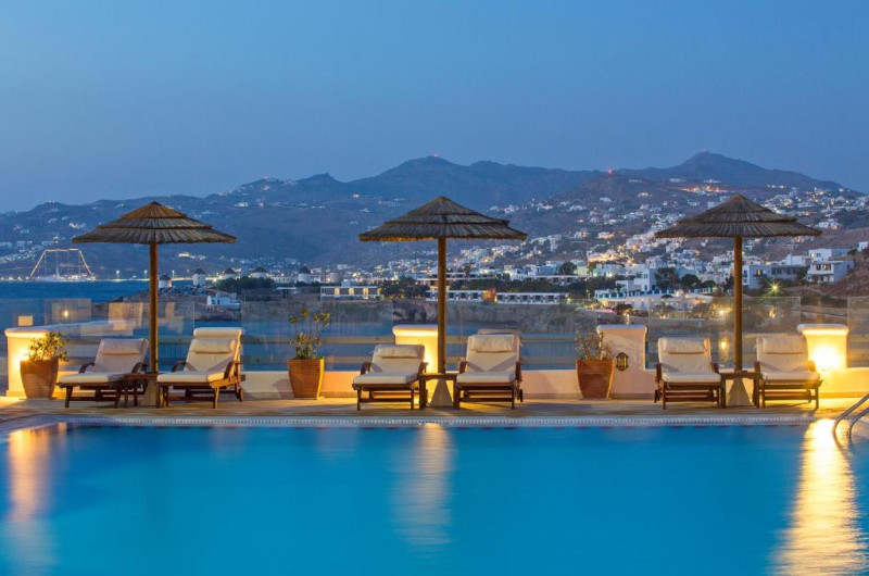 Grand Beach este o proprietate de 4 stele situată în Megali Ammos (Mykonos) (Mykonos) care oferă camere cu vedere la mare, un restaurant, o piscină în aer liber și o terasă cu șezlonguri și umbrele de soare. Facilitățile de la Grand Beach includ și sală de fitness. Proprietatea are, de asemenea, servicii de recepție cu program non - stop și concierge. Se oferă acces gratuit la internet Wi-fi în spațiile publice.