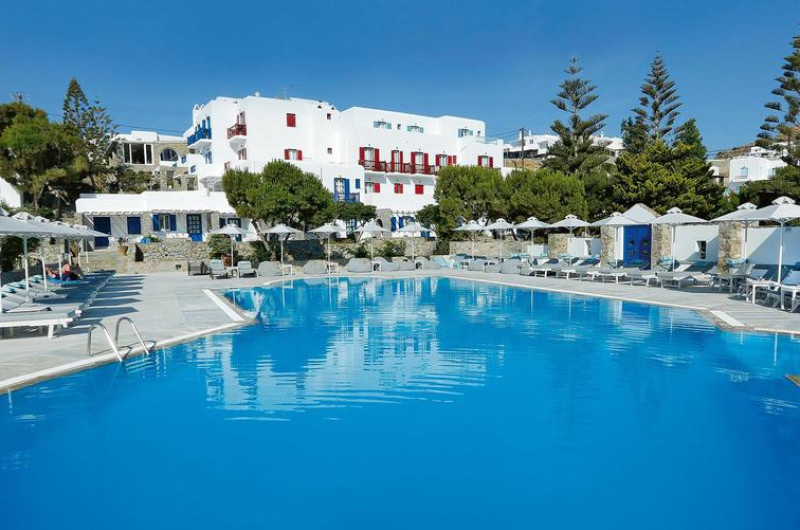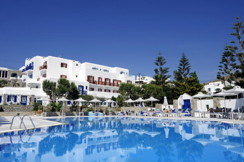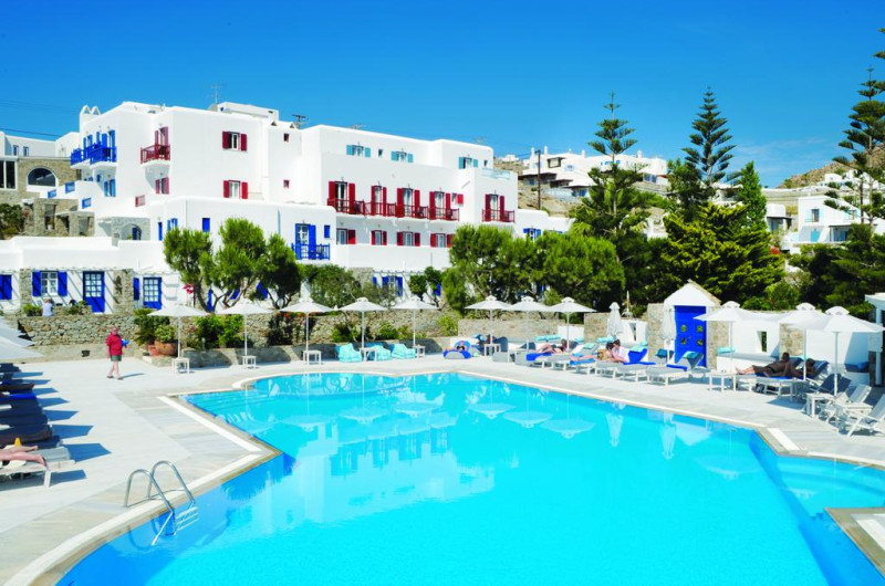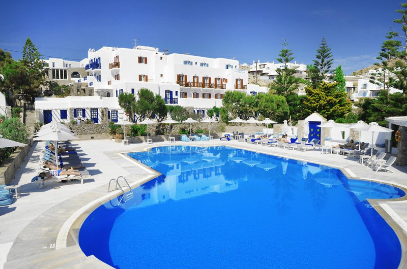 Situată în Mykonos Town, la o distanță de 150 m de plaja Psarou, această proprietate de 3 stele dispune de piscină interioară, piscină în aer liber și terasă cu șezlonguri și umbrele de soare. Proprietatea are servicii de recepție cu program non - stop și închirieri auto. Se oferă acces gratuit la internet Wi-fi în spațiile publice. Parcarea este disponibilă la proprietate gratuit.