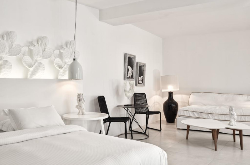 Sunt disponibile 111 camere. Un minibar și o mașină pentru preparare cafea sau ceai se află în fiecare cameră. Oaspeții pot solicita serviciul de room service pentru a servi masa sau diverse băuturi. Camerele de la Myconian Imperial Resort sunt dotate cu aer condiționat, Tv cu canale prin satelit și seif. În camere există baie cu cadă sau duș, foehn, articole de toaletă gratuite, precum și halate de baie și papuci. Unele camere au balcon cu vedere la mare sau la grădină. Oaspeții au acces gratuit la serviciul Wi-fi în camere. Curățenia in cameră se face zilnic. Anumite camere au zonă de relaxare și cadă cu hidromasaj care asigură un plus de confort și răsfăț.