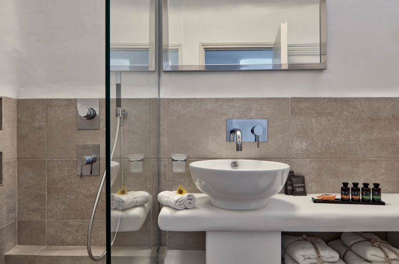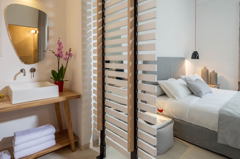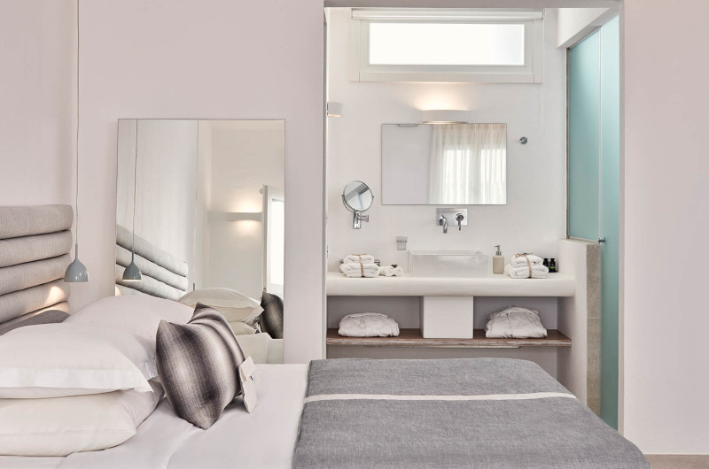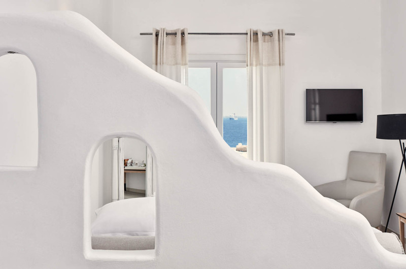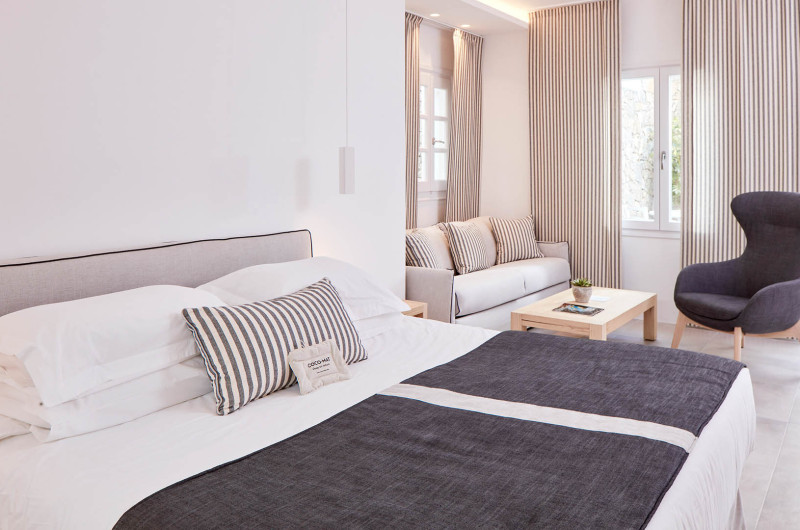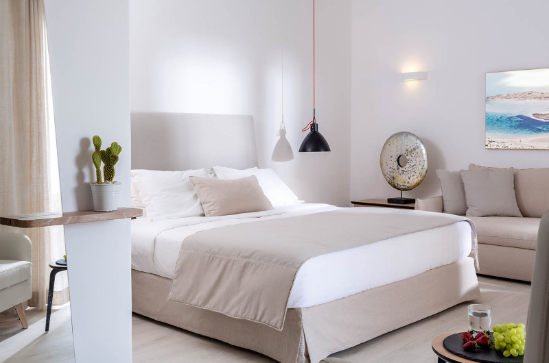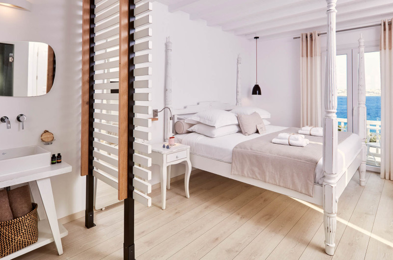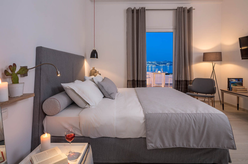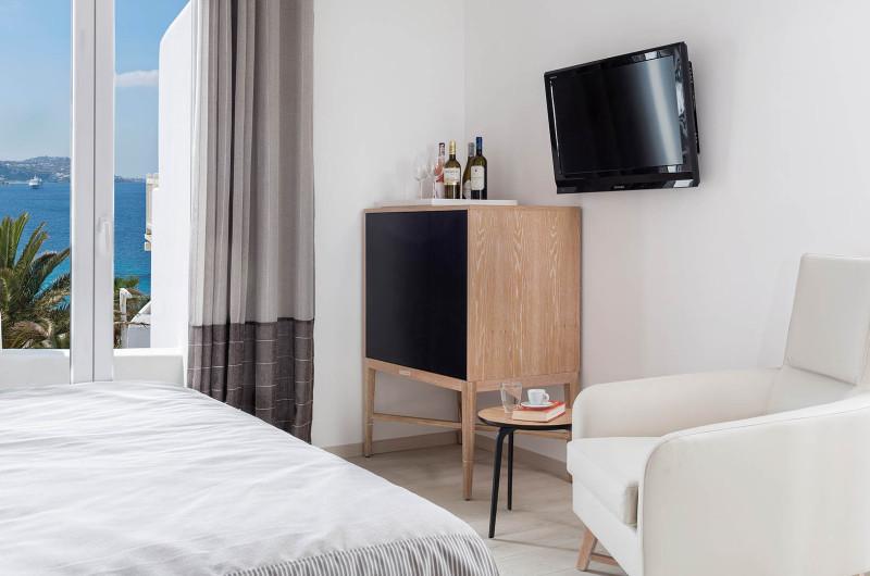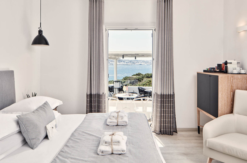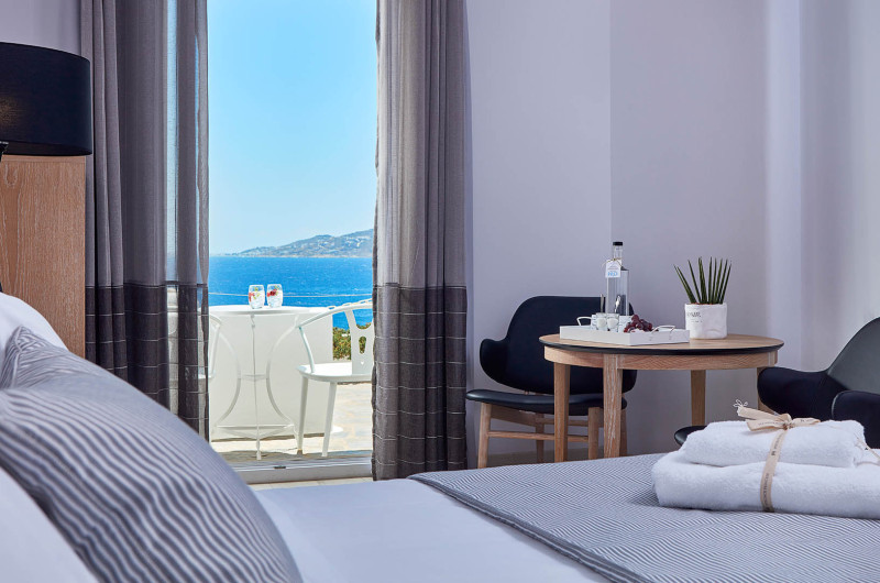 Camerele au balcon cu vedere la mare sau la piscină. Fiecare cameră dispune de un aparat pentru preparare cafea sau ceai, cană-fierbător și minibar. Oaspeții pot solicita serviciul de room service pentru a servi masa sau diverse băuturi. Camerele de la Mykonos Princess Hotel sunt dotate cu aer condiționat, Tv cu canale prin satelit și seif. În camere există baie cu cadă sau duș, foehn, articole de toaletă gratuite, precum și halate de baie și papuci. Oaspeții au acces gratuit la serviciul Wi-fi în camere. Curățenia in cameră se face zilnic. Proprietatea oferă camere pentru familie cu o suprafață mai mare și un număr mai mare de paturi față de cele standard.