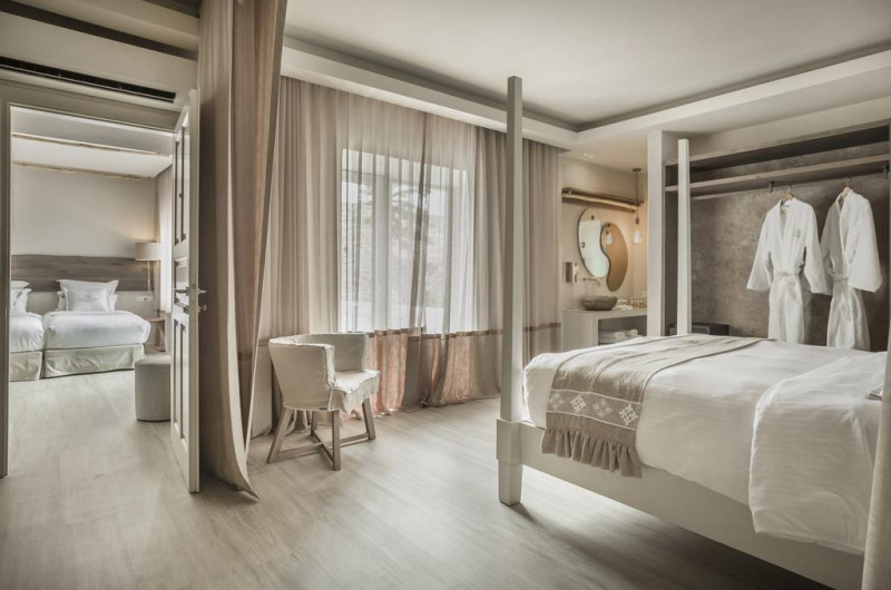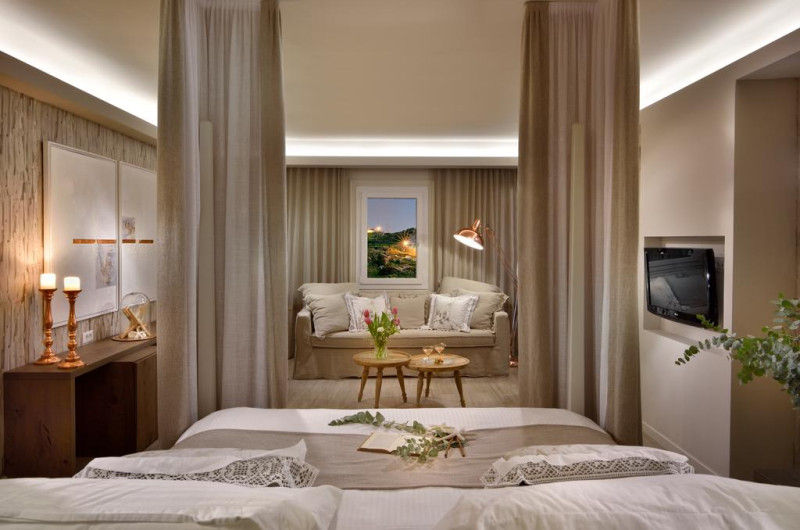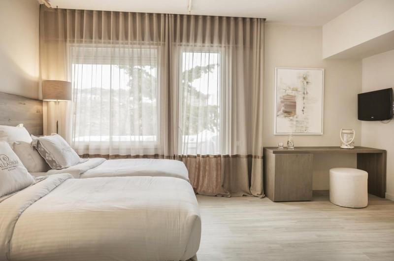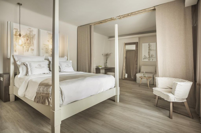 Unele camere au balcon cu vedere la mare sau la piscină. Camerele confortabile de la Palladium Boutique Hotel au pardoseală de gresie/ marmură, aer condiționat, Tv cu canale prin satelit și seif. În camere există baie cu cadă sau duș ce are în dotare foehn și articole de toaletă gratuite. Fiecare cameră dispune de minibar și cană-fierbător. Oaspeții pot solicita serviciul de room service pentru a servi masa sau diverse băuturi. Oaspeții au acces gratuit la serviciul Wi-fi în camere. Curățenia in cameră se face zilnic. Anumite camere au zonă de relaxare cu canapea și cadă cu hidromasaj care asigură un plus de confort și răsfăț. Proprietatea oferă camere pentru familie cu o suprafață mai mare și un număr mai mare de paturi față de cele standard. Se pot rezerva de asemenea camere pentru nefumători.