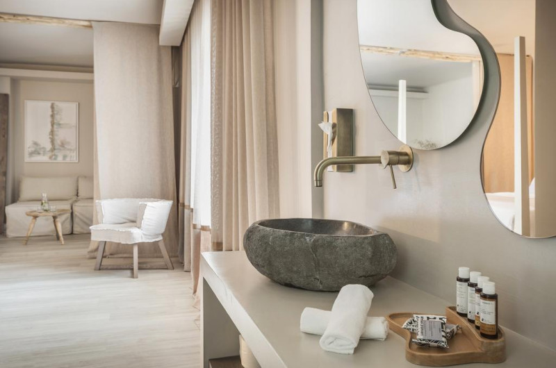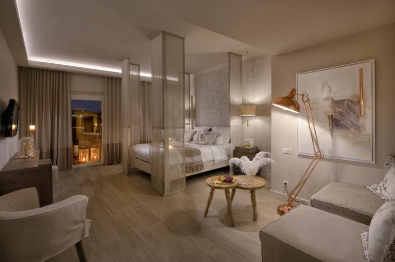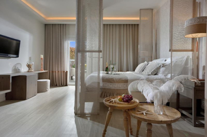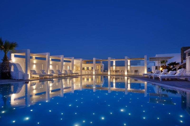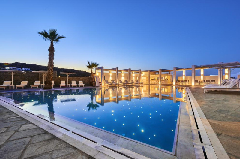 Palladium Boutique Hotel este o proprietate de 5 stele care se află în Platys Gialos, la o distanță de 200 m de plaja Psarou și oferă piscină în aer liber, cu șezlonguri și umbrele de soare, precum și un centru spa care asigură servicii pentru un sejur extrem de relaxant. Facilitățile de la Palladium Boutique Hotel includ și sală de fitness. Proprietatea are, de asemenea, servicii de recepție cu program non - stop, concierge și închirieri auto. Se oferă acces gratuit la internet Wi-fi în spațiile publice. Parcarea este disponibilă la proprietate gratuit.