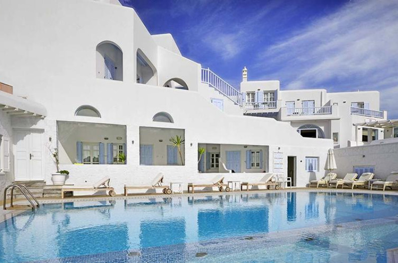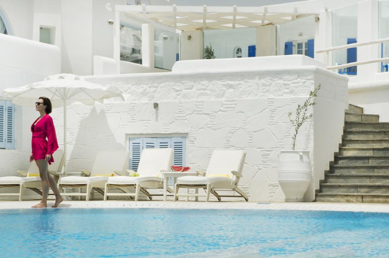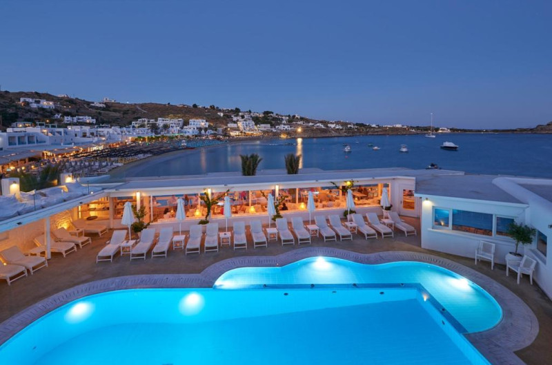 Petinos Beach este o proprietate de 4 stele situată în Platis Gialos (Mykonos) care oferă camere cu vedere la mare, un restaurant, o piscină în aer liber și o terasă cu șezlonguri și umbrele de soare. Facilitățile de la Petinos Beach includ și sală de fitness. Proprietatea are, de asemenea, servicii de recepție cu program non - stop și închirieri auto. Se oferă acces gratuit la internet Wi-fi în spațiile publice.