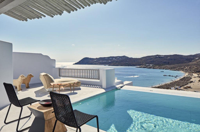 Royal Myconian Resort dispune de plajă privată cu nisip. Pe plajă există șezlonguri și umbrele de plajă gratuite.