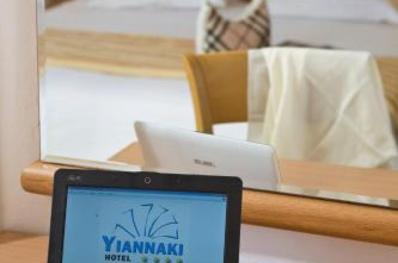Sunt disponibile 45 camere. Camerele confortabile de la Yiannaki sunt dotate cu pardoseală de gresie/ marmură, aer condiționat, Tv și seif. Camerele au balcon cu masă și scaune unde pot fi petrecute momente de relaxare. Fiecare cameră dispune de minibar. Oaspeții pot solicita serviciul de room service pentru a servi masa sau diverse băuturi. În camere există baie cu cadă sau duș ce are în dotare foehn și articole de toaletă gratuite. Oaspeții au acces gratuit la serviciul Wi-fi în camere. Curățenia in cameră se face zilnic. Fiecare unitate de cazare are frigider. Proprietatea oferă camere pentru familie cu o suprafață mai mare și un număr mai mare de paturi față de cele standard.