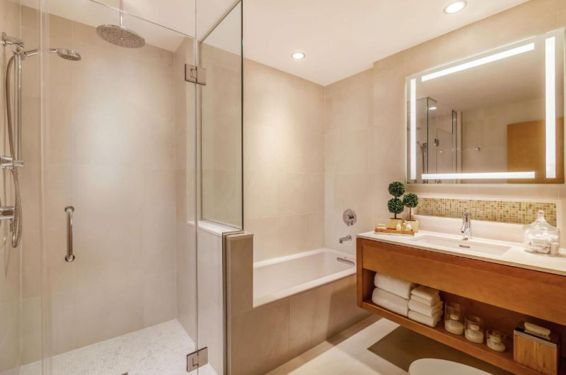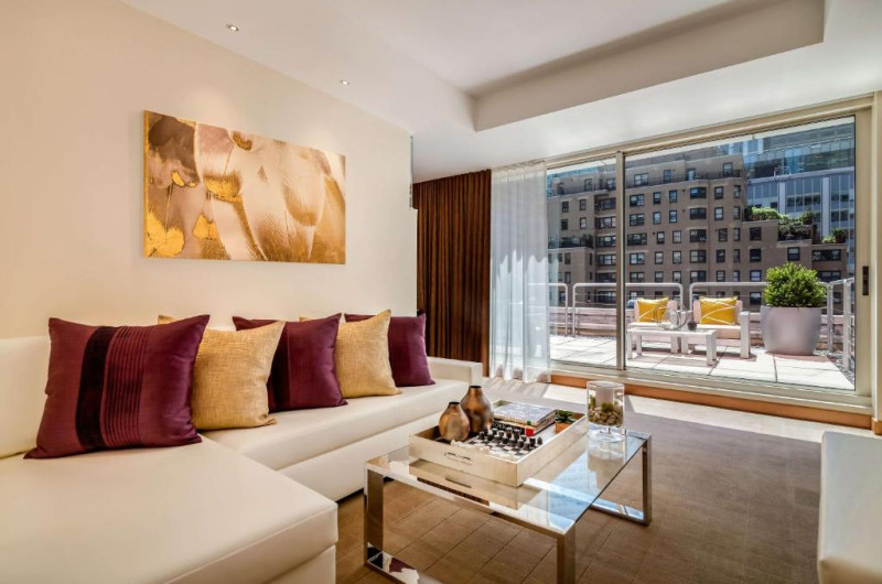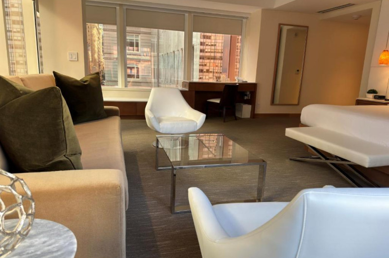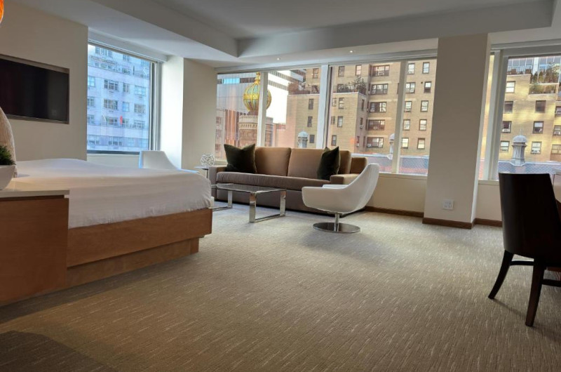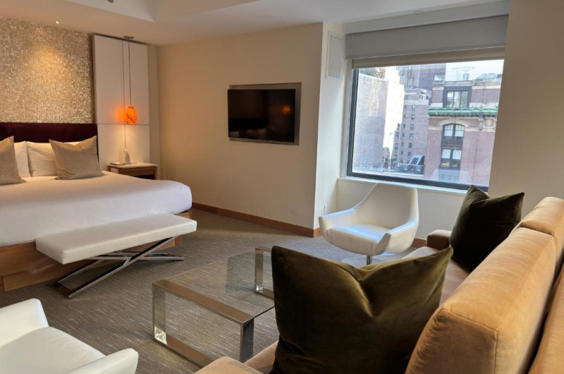 Camerele hotelului au birou și TV cu ecran plat. Camerele includ baie proprie cu articole cadă adancă, duș cu efect de ploaie, de toaletă gratuită și halate de baie. In funcție de locația camerei, aceasta oferă vedere la clădirea Chrysler, la Sinagoga Centrală, la podul Queensboro și la raul East.