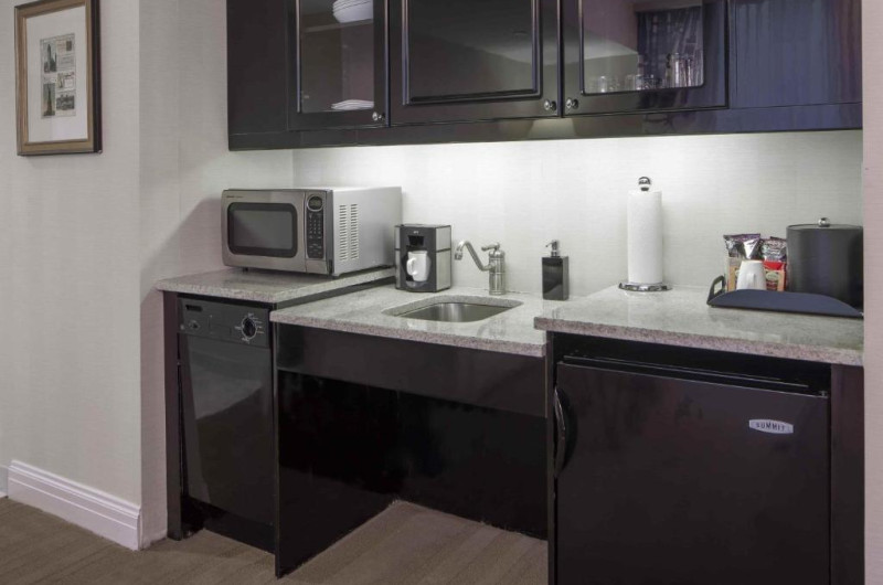 Un televizor cu ecran plat, baie de marmură și chicinetă se găsesc in fiecare suită modernă de The Manhattan Club. Camerele sunt dotate cu cafetieră, birou și birou de călcat.