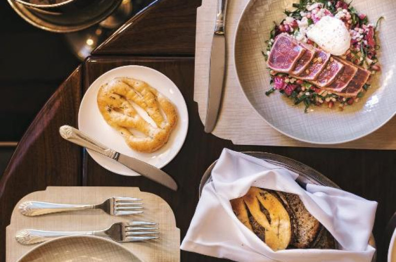 Hotelul The Pierre a găzduit numeroase evenimente sociale de la deschiderea sa, in anul 1930. Restaurantul Perrine al hotelului oferă bucătărie modernă sezonieră americană, cu specialități zilnice inspirate de preparate culinare clasice Pierre. De asemenea, la hotel se află lounge-barul Two E, care servește ziua tradiționalul ceai de după amiază, iar seara (de luni pană joi) oferă un program live de muzică jazz.