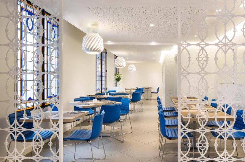 Hotelul Holiday Inn Paris Gare de l'Est este situat vizavi de gara si stația de metrou Gare de l'Est, care oferă acces direct la atracții precum Saint-Michel și Cartierul Latin. Oaspetii au la dispozitie un bar in hol, cu ferestre de cristal.