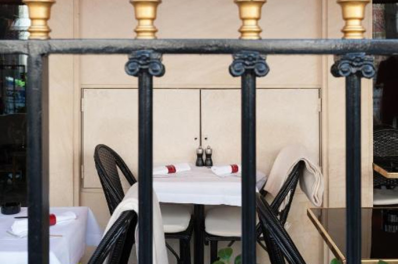 Restaurantul hotelului serveste preparate frantuzesti traditionale, iar micul dejun este disponibil zilnic. Oaspetii pot savura băuturi la barul care se deschide spre un patio.