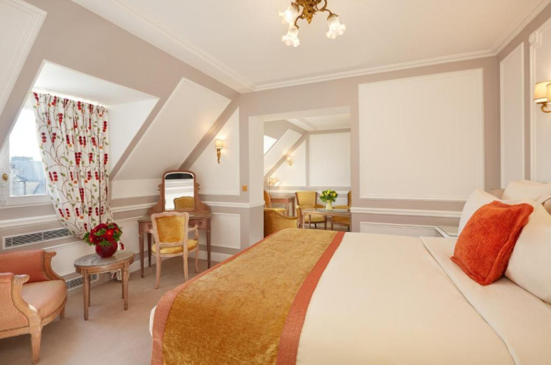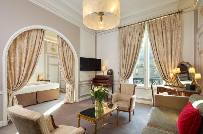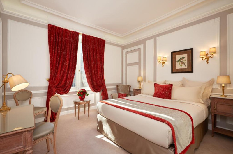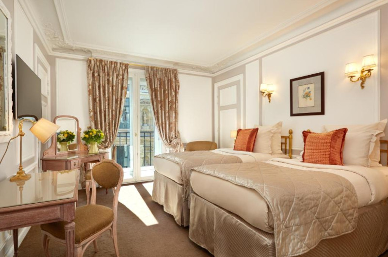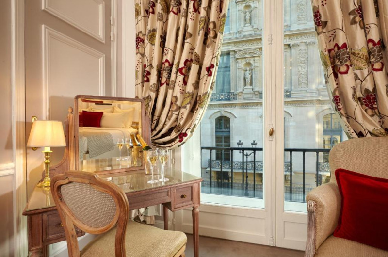 Camerele cu design elegant au mobilier de epocă, aer condiționat, TV cu ecran plat și canale prin satelit, telefon și seif. Unele camere oferă vedere la Grădinile Tuileries si la Muzeul Luvru. Accesul la conexiunea WiFi este gratuit in tot hotelul, iar in fiecare cameră există facilități pentru prepararea ceaiului și a cafelei.