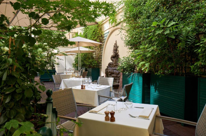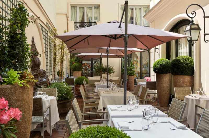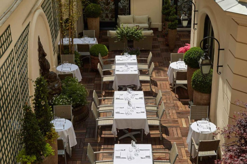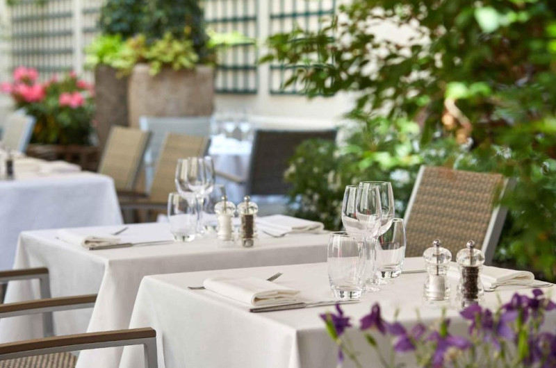 In fiecare zi este oferit atat un mic dejun continental, cat și un mic dejun tip bufet. Copiii cu varsta cuprinsă intre 6 și 12 ani pot beneficia de un tarif redus pentru micul dejun tip bufet. La restaurantul Salon Rivoli oaspeții pot savura preparate culinare franceze de sezon, iar in zilele insorite pot lua masa pe terasă. In plus, aceștia se pot relaxa savurand băuturi răcoritoare in barul de tip lounge, cu decor britanic tipic sau se pot răsfăța cu ceai și produse de patiserie de lux.