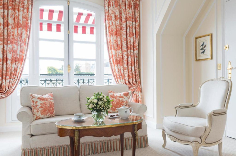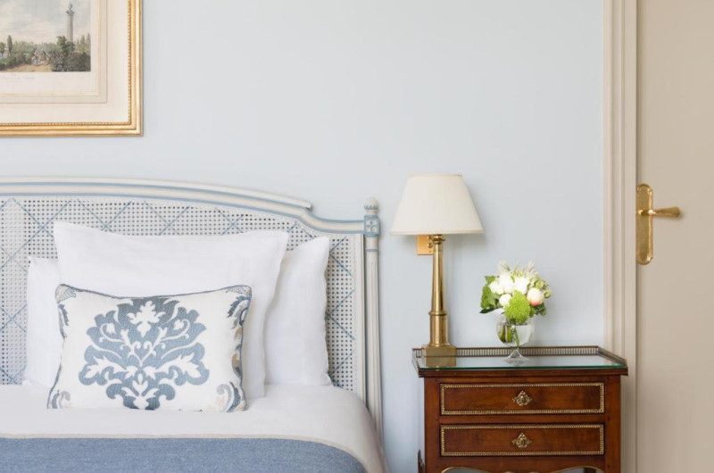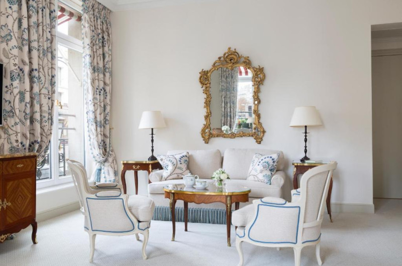 Camerele spațioase si elegante sunt decorate individual, iar unele au mobilier in stil Ludovic al XV-lea sau Ludovic al XVI-lea. Toate camerele includ baie privată, dotată cu o chiuvetă dublă și duș separat. Camerele oferă vedere la grădina interioară, la curtea plină de flori a hotelului sau la strada Faubourg Saint Honoré.
