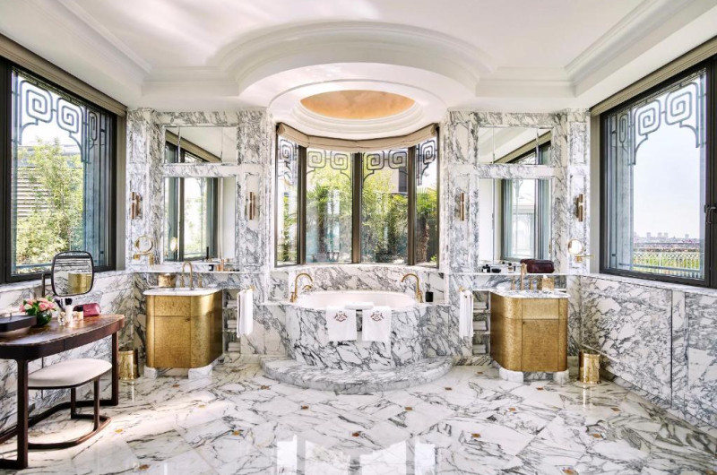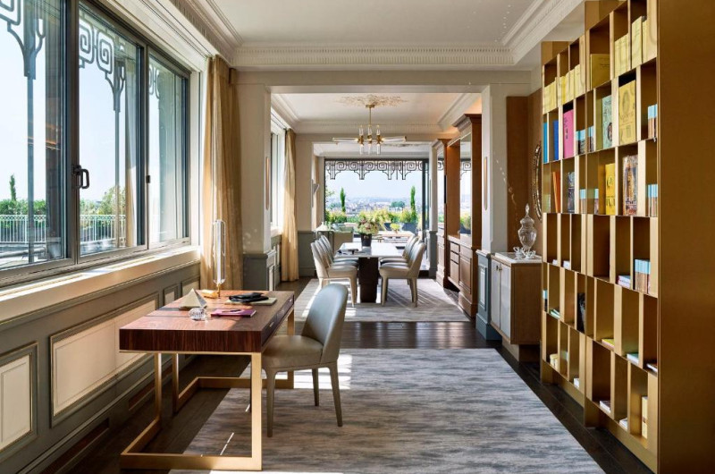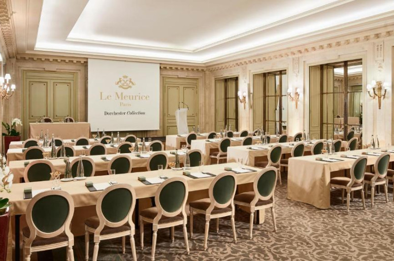 Hotelul Le Meurice se află intr-un palat din centrul Parisului. Oferă un restaurant cu 2 stele Michelin, precum si un centru de fitness si spa, cu tratamente de masaj.