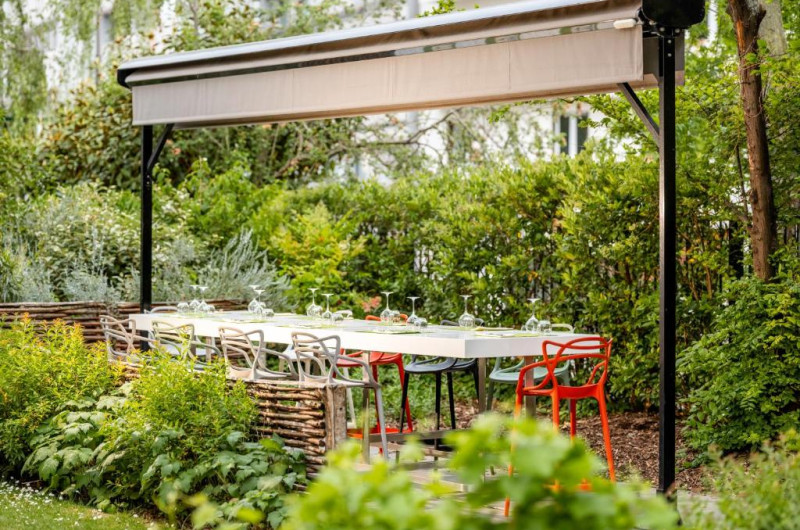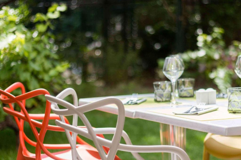 In fiecare zi se oferă un mic dejun american sau tip bufet, care poate fi savurat pe terasă. Restaurantul Le Jardin oferă cină cu preparate franceze tradiționale și vinuri alese cu atenție.