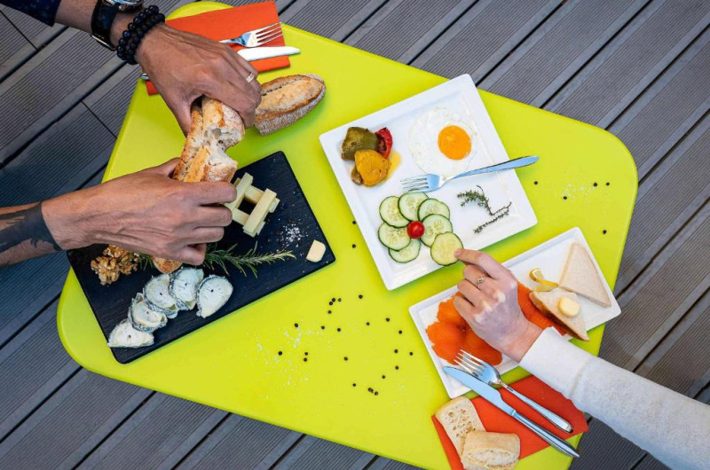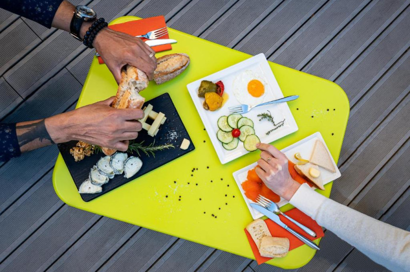 Hotelul servește mic dejun tip bufet zilnic. La cerere, puteți să savurați micul dejun in cameră. Barul SpeakArt al hotelului are terasă si serveste gustări si băuturi.