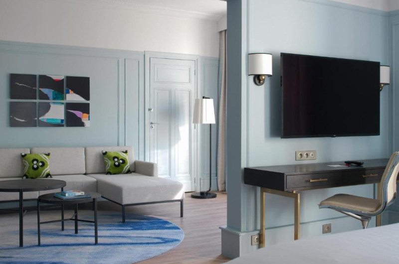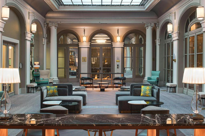 Hotel Marriott Paris Opera Ambassador combines luxury Art Deco features from the 1920s and period furniture with contemporary lighting and state-of-the-art amenities. The lobby features a new concept of a snack buffet and internet access point in each corner of the lobby. Charles de Gaulle Airport can be reached within 19 km.