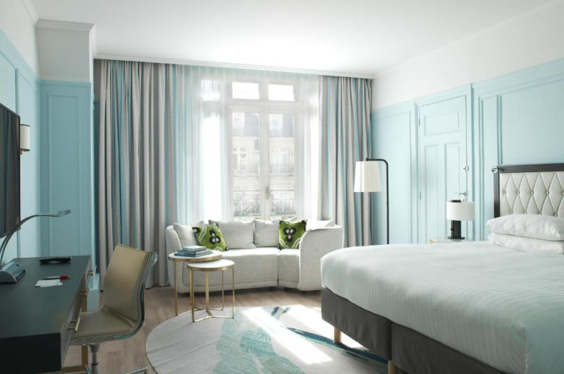 All of the spacious rooms are air-conditioned and some include a minibar. A courtesy tray including tea and coffee and a mineral water is featured. The hair dryer, the iron & iron table are only some examples of the services available. The executive rooms and suites give access to a Roof Top Lounge at the 8th floor with a view on Paris’ roofs.