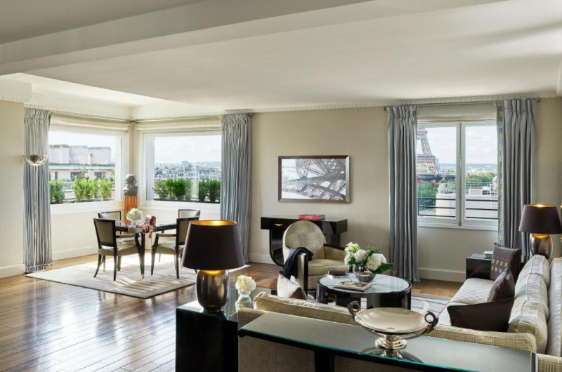 Printre facilitățile oferite la Hôtel Plaza Athénée se numără un serviciu de lustruire a pantofilor si serviciu de menajeră de 2 ori pe zi. Stația de metrou Alma Marceau se află la 300 de metri, iar Turnul Eiffel este situat la 15 minute de mers pe jos de hotel.