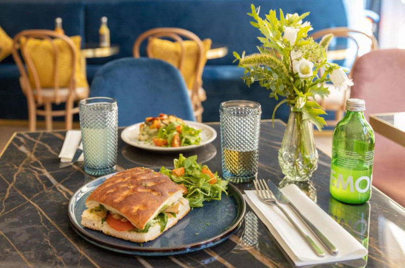 In fiecare dimineată, restaurantul Le Parnasse servește un mic dejun tip bufet, care include produse de patiserie franțuzești si ouă. Oaspeții se pot relaxa cu o băutură de la barul Scarlet pe terasă sau in hol.
