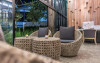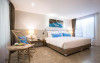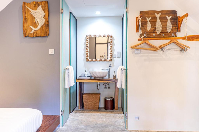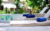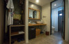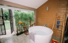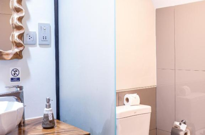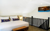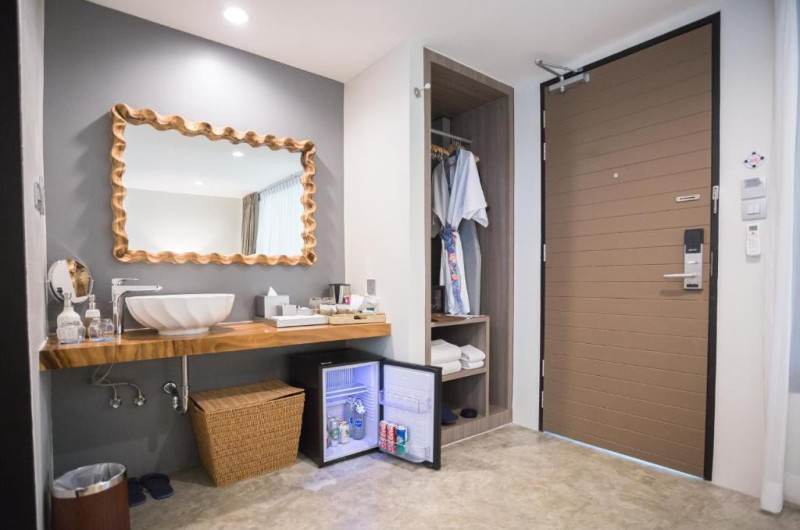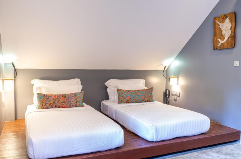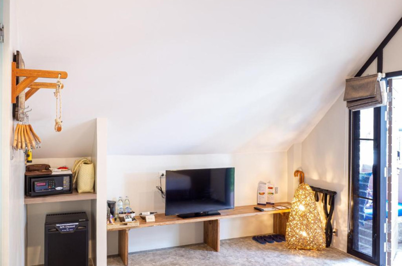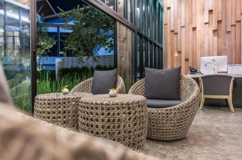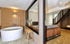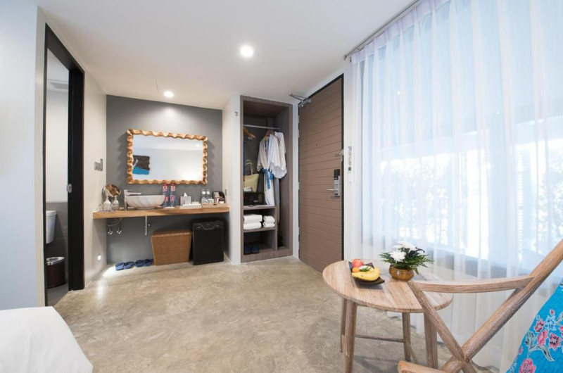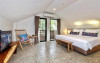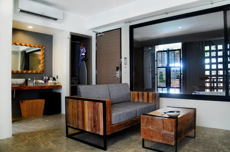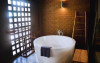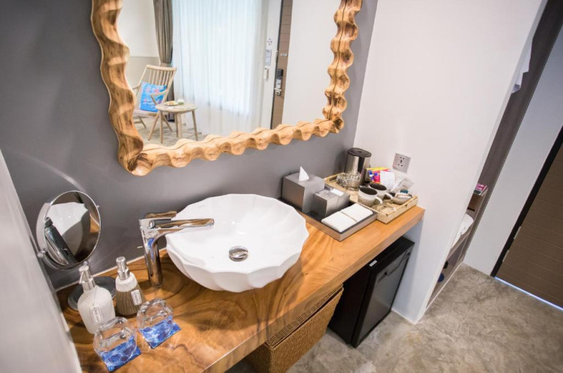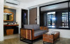 The earth-tone with tints of blue rooms are all air-conditioned and have a privacy balcony that overlooks the garden. The spacious bathrooms are fitted with fluffy towels, bathrobe, complimentary luxury toiletries and a rain shower. Selected room types also come with a separate outdoor bathtub.