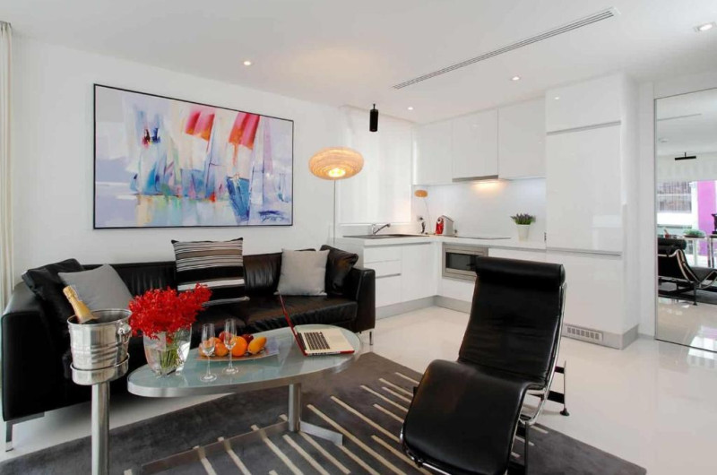 Apartamentele moderne bine mobilate de la BYD Lofts - Boutique Hotel & Serviced Apartments - Patong Beach, Phuket - SHA Plus au o zonă separată de living cu un TV Smart cu internet 4K - 55 inch. Pentru confort, bucătăria europeană este dotată cu tacamuri, vesela și tigăi. In cameră este disponibil și un aparat de cafea espresso.