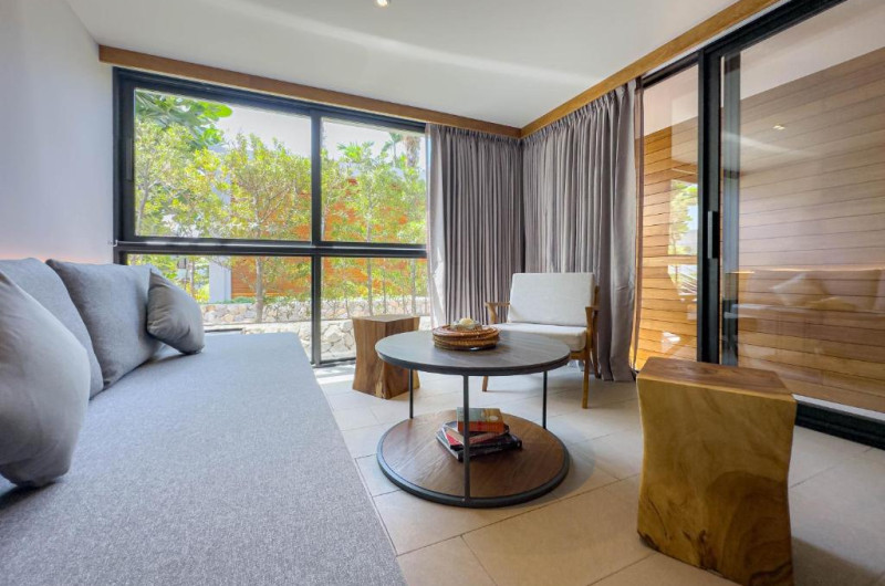 Veți putea admira vederea frumoasă la mare de la ferestrele de sticlă transparentă și de pe terasa la soare privată. Fiecare cameră este dotată cu un minibar gratuit, cu bere rece și gustări. De asemenea, există un TV cu ecran plat și o stație de andocare pentru iPod.