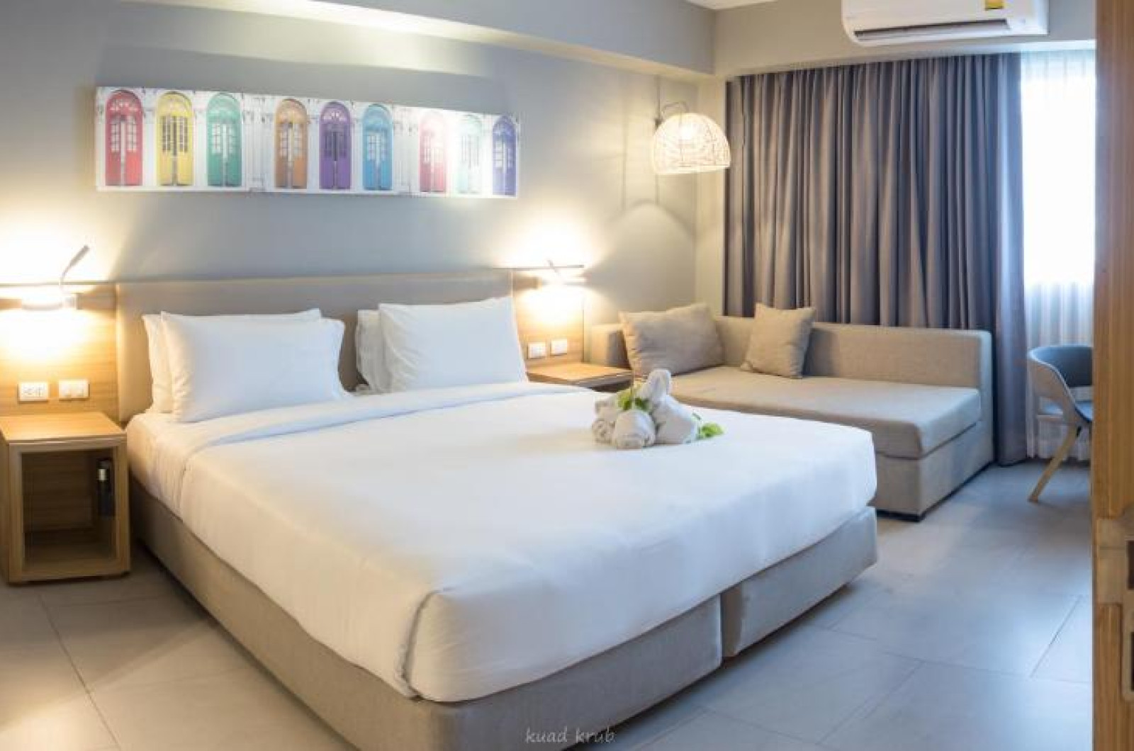 La hotel, fiecare cameră este dotată cu aer condiționat, zonă de relaxare, TV cu ecran plat cu canale prin satelit, cutie de valori și baie privată cu bideu, articole de toaletă gratuite și uscător de păr. Journeyhub Phuket Patong oferă anumite unități cu vedere la munte, iar camerele sunt dotate cu fierbător. La cazare camerele sunt dotate cu lenjerie de pat si prosoape.