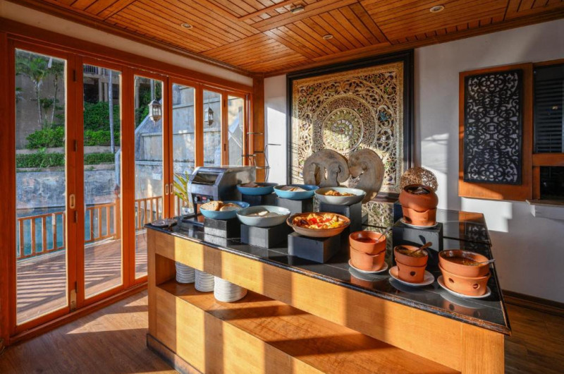 Briza răcoroasă a mării insoțește specialitățile thailandeze la restaurantul in aer liber al Resort Karon Phunaka. Mesele pot fi servite și in camere.