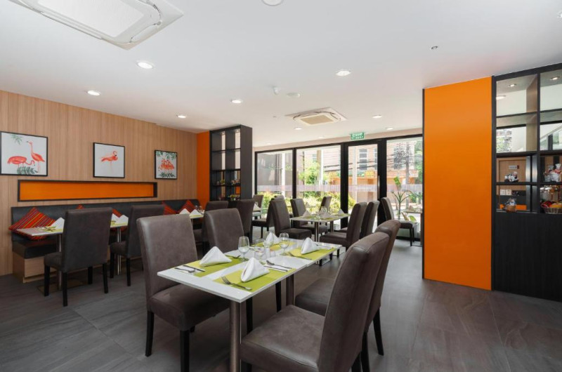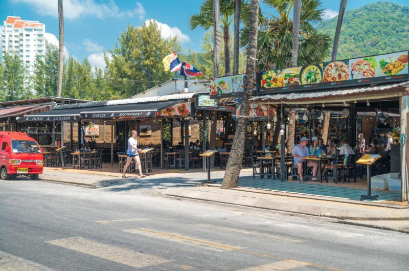 Proprietatea servește un mic dejun tip bufet, american sau asiatic. KK Karon Kata Boutique Hotel are un restaurant care servește preparate din bucătăria locală, asiatică și europeană.