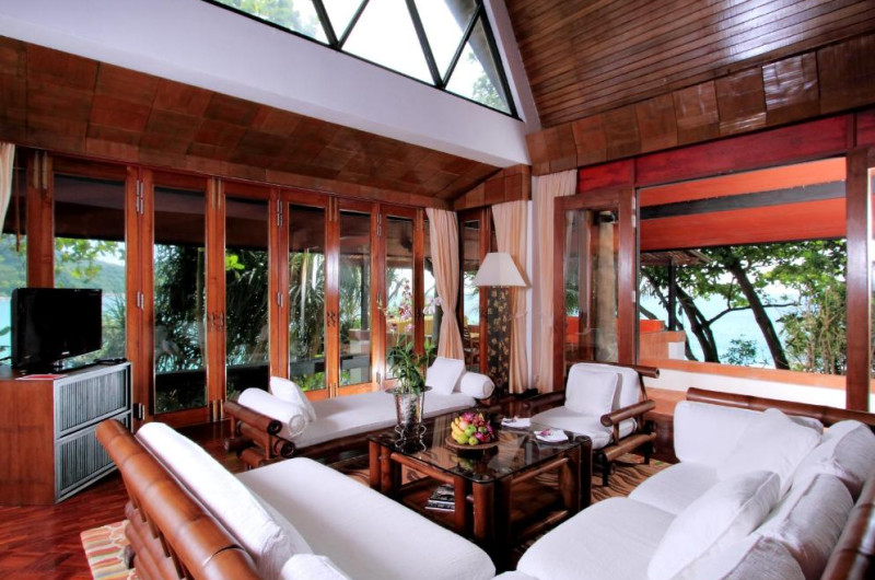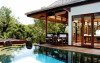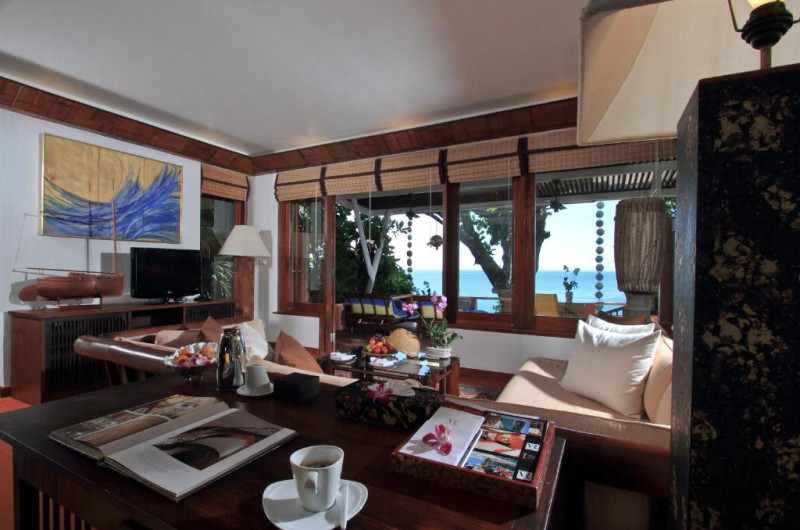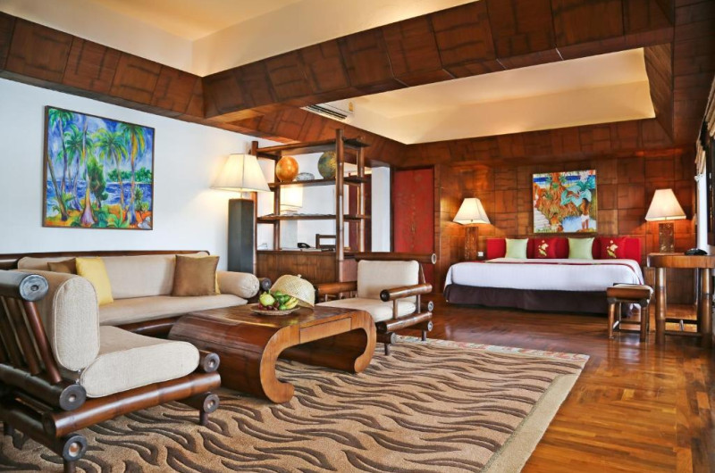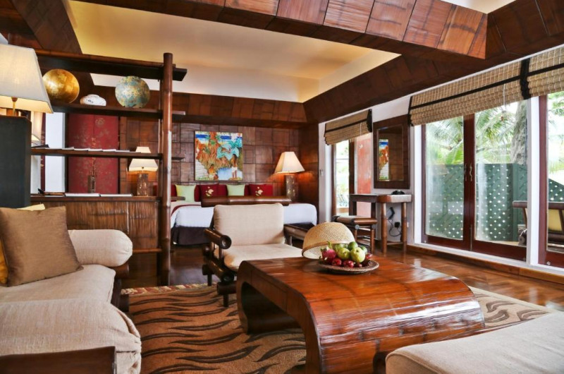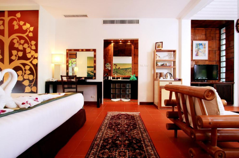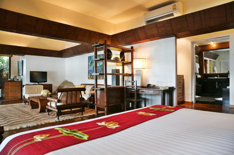 Suitele elegante de la Mom Tri’s Royale Villa au decor thailandez modern și podea din lemn. Fiecare vilă are balcon privat și zonă de relaxare cu TV cu ecran plat de 32 inch.