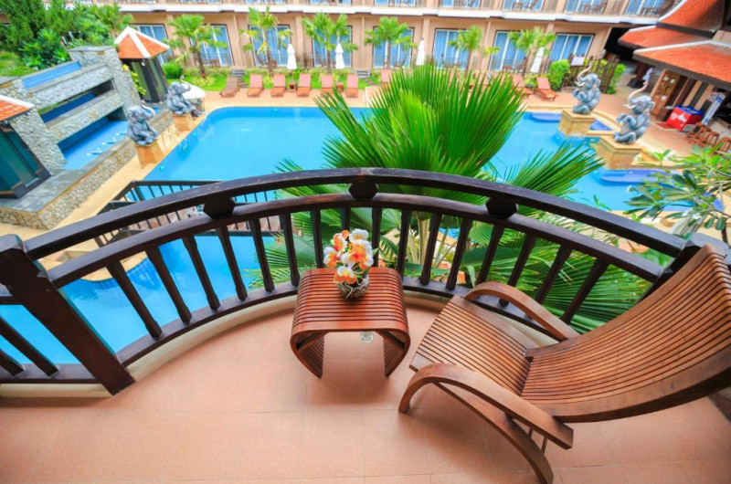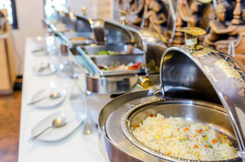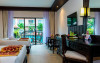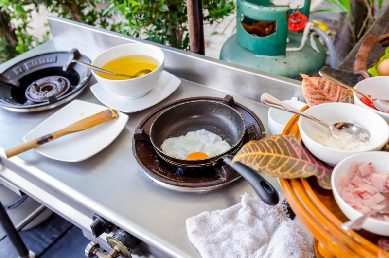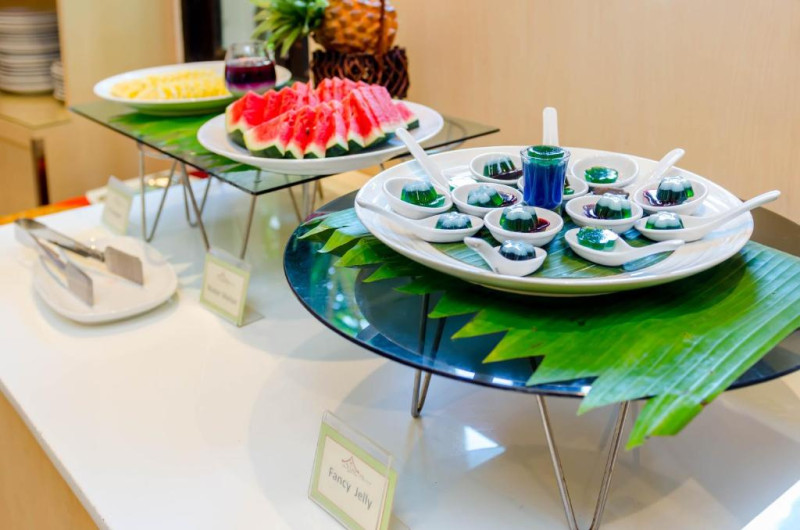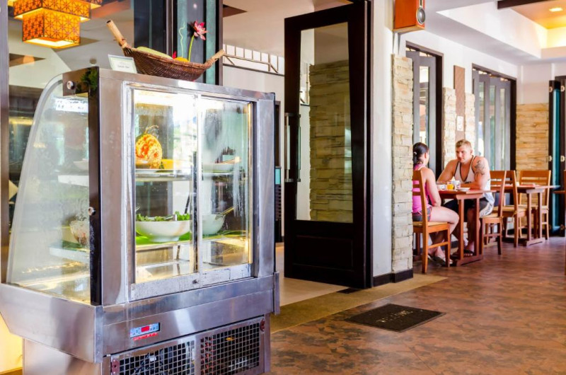 Restaurantul oferă preparate thailandeze și internaționale. Barul oferă cocteiluri care pot fi savurate langă piscină.
