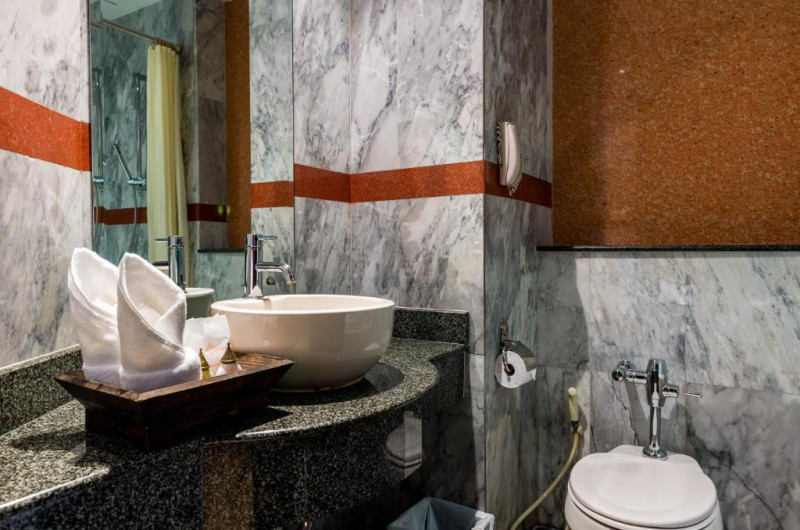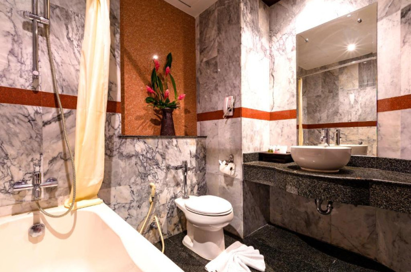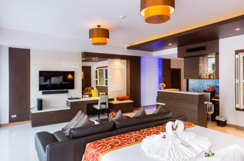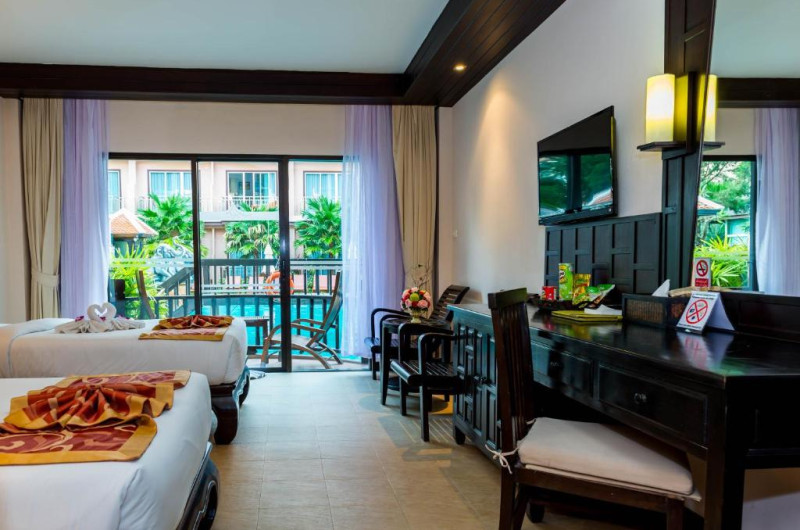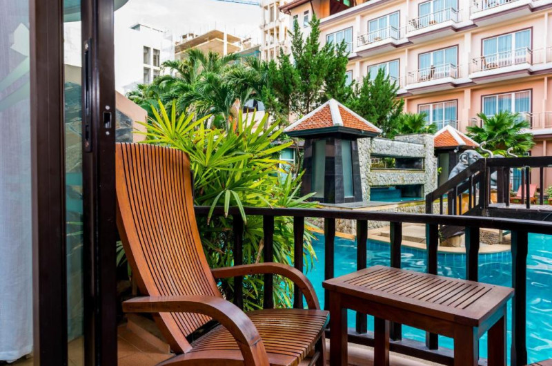 Camerele de la Ni Resort, Patong Beach - SHA Plus au mobilier din lemn și balcon sau verandă privată cu vedere la oraș sau la piscină. Fiecare cameră oferă TV prin satelit, cutie de valori și facilități de ceai/cafea. Baia privată include cadă și duș.