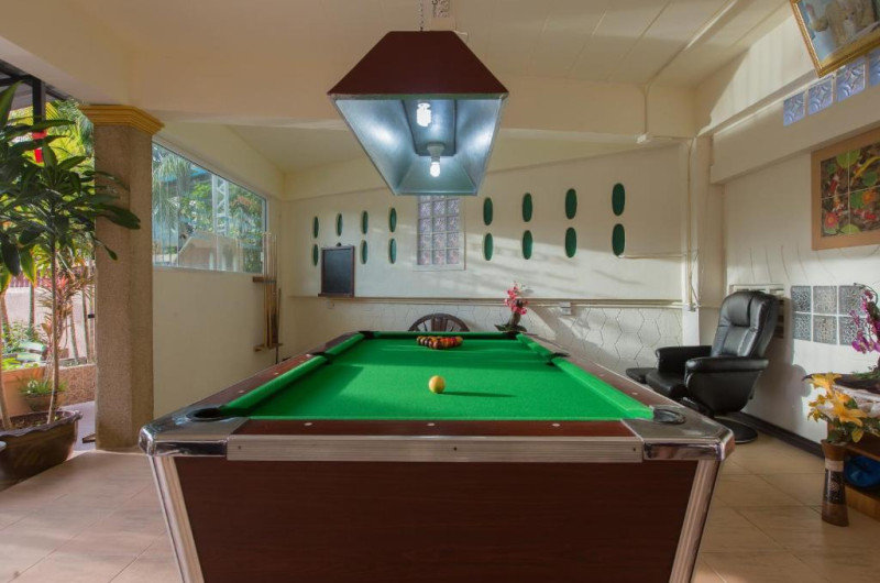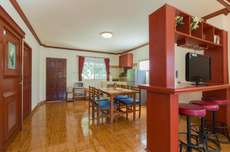 In restaurantul, situat langă piscină, sunt servite mancăruri thailandeze și internaționale. Are un bar care oferă beri reci și alte băuturi alcoolice.