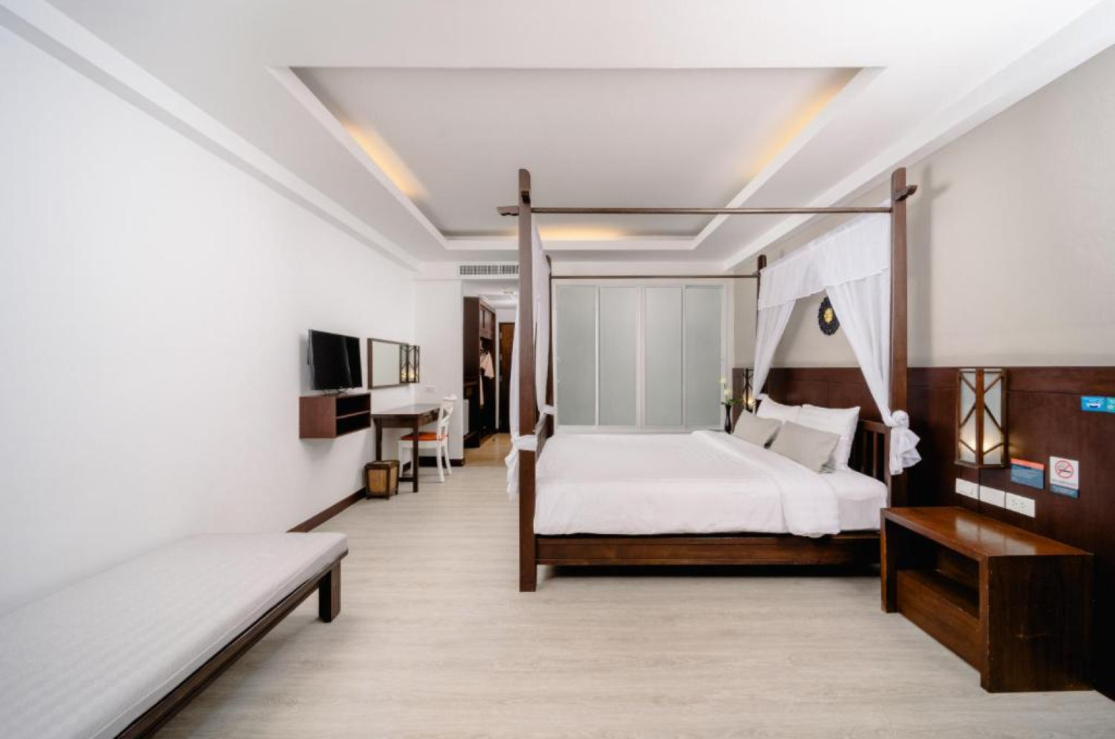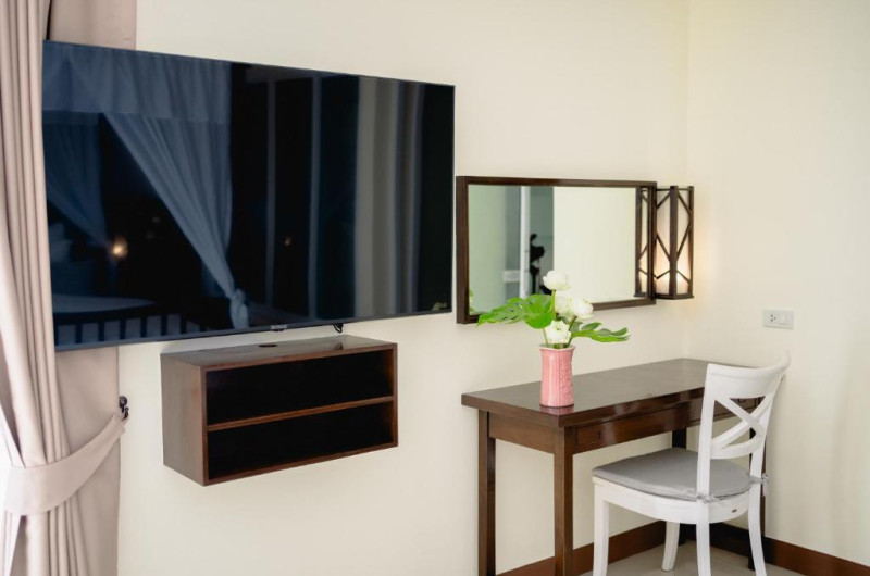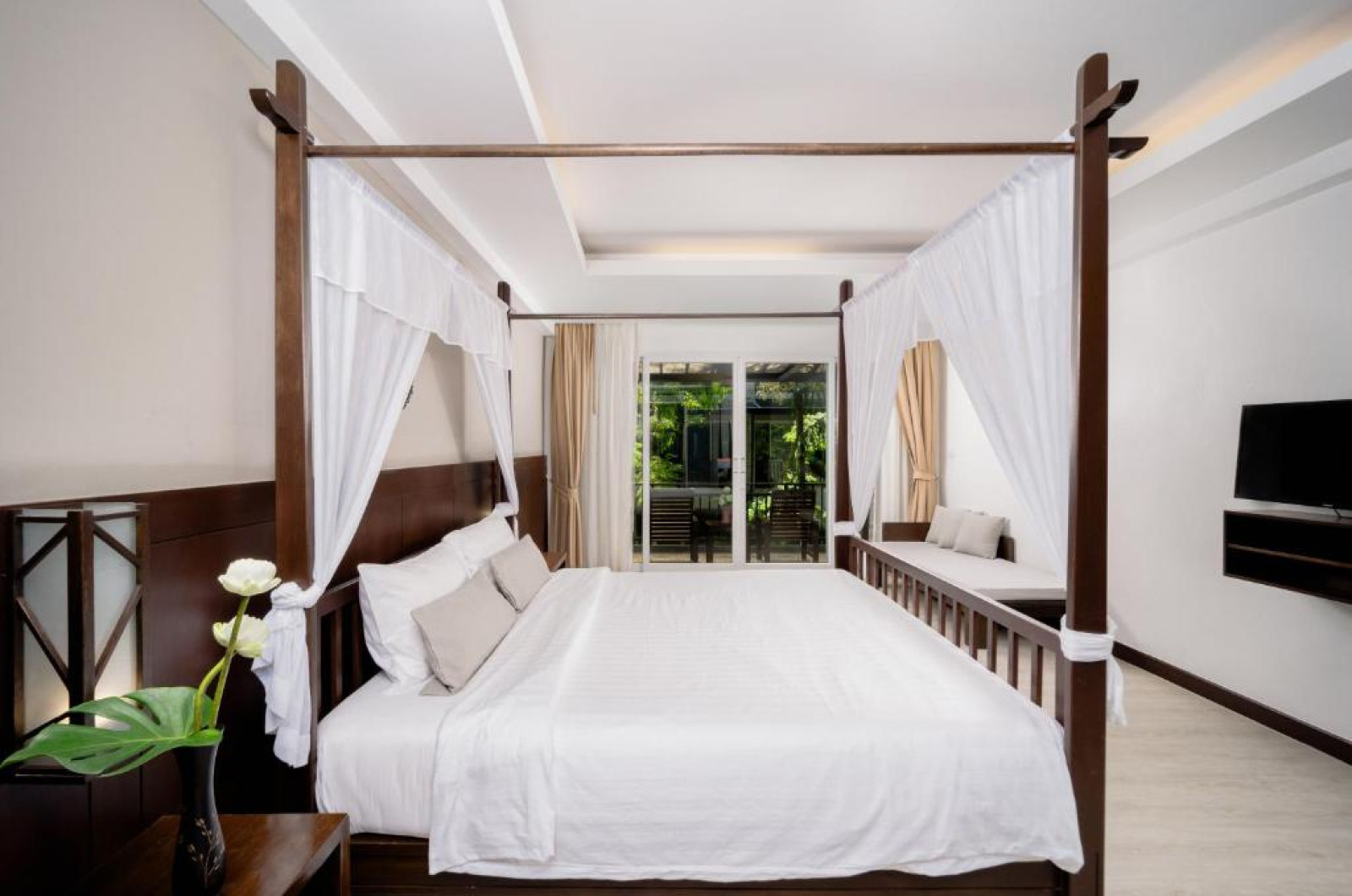 Camerele de la Railay Princess Resort & Spa au mobilier in stil thailandez, TV prin satelit, zonă de relaxare și balcon privat cu vedere la grădină și piscină.