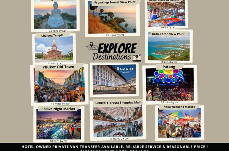 Templul Chalong este la 4,2 km de hotel, iar Casa Chinpracha este la 4,7 km de proprietate. Cel mai apropiat aeroport este Aeroportul Internațional Phuket, situat la 33 km de Ramada Plaza by Wyndham Chao Fah Phuket.