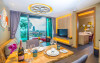 Restaurantul Eat More de la ultimul etaj are vedere la oras si la Marea Andaman, oferind un bufet international si meniuri à la carte. Barul Splash Mountain, aflat pe terasa in aer liber de langă piscină, propune cocktailuri exotice, gustări si mese usoare. The Love Lounge serveste cafea proaspătă, deserturi de casă pregătite in brutăria proprie si inghetată tentantă, precum si un meniu complet de bar.