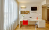 Dotările standard ale camerelor hotelului Leone, inaugurat in august 2011, includ ferestre panoramice, aer conditionat individual si minibar. La cerere sunt disponibile perne antialergice.