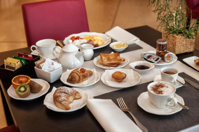 Leone Di Messapia oferă un mic dejun cu branzeturi si mezeluri locale, precum si prăjituri de casă. Restaurantul Bella 'Mbriana de langă hotel asigură preparate traditionale din regiunea Puglia.