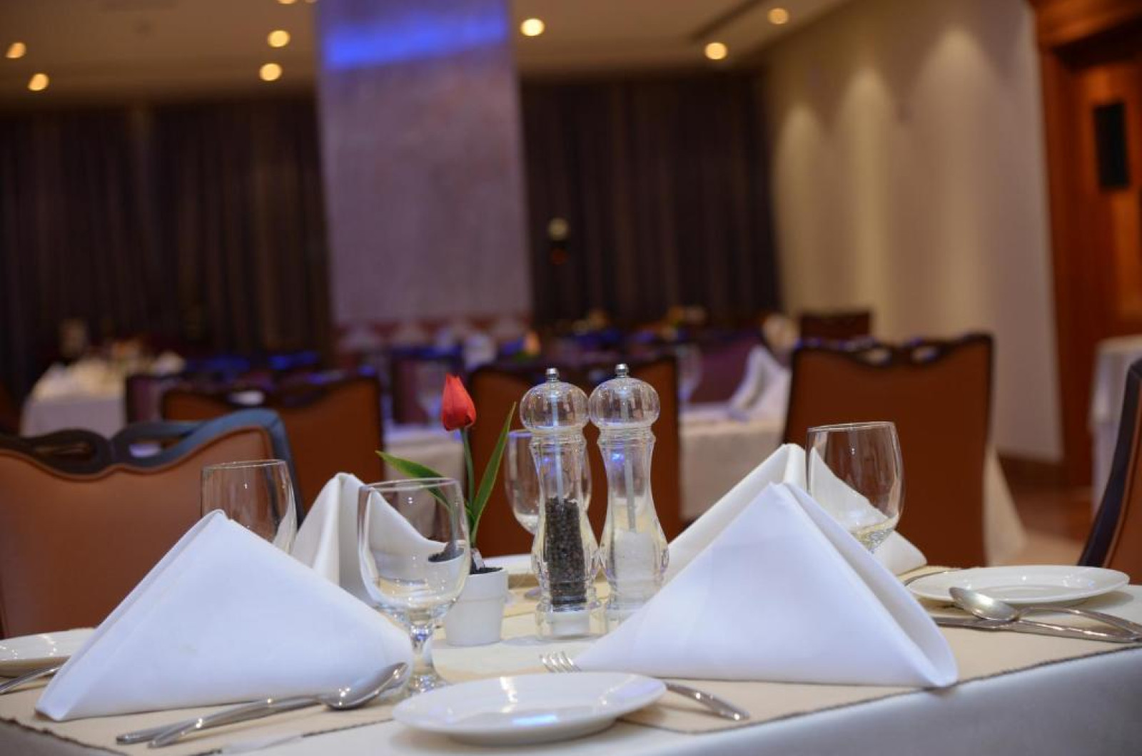 Oaspeții se pot bucura de o gamă largă de mancăruri asiatice, indiene și internaționale la restaurantul Matbakh. Este disponibil și room service.