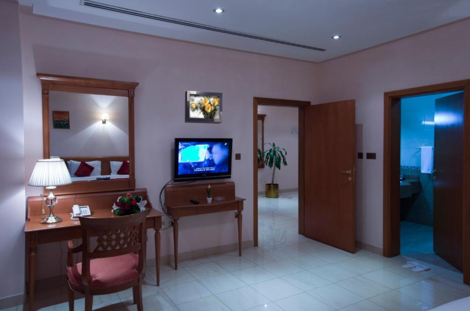 Camerele de la Al Madina Suites Doha sunt decorate in culori calde și mobilier din lemn. Toate camerele au acces gratuit la internet WiFi și prin cablu, TV LCD cu canale prin satelit și zonă de relaxare.