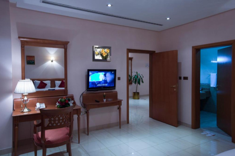 Al Madina oferă suite cu aer condiționat, frigider și cuptor cu microunde și este situat la 20 de minute de mers cu mașina de Aeroportul Internațional Doha. Facilitățile includ un centru de fitness. Este disponibilă o parcare privată gratuită.
